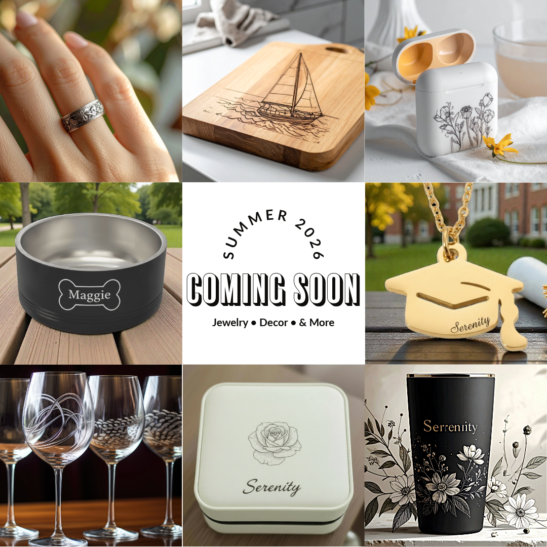 Custom engraved jewelry, décor, & gifts—uniquely yours.
